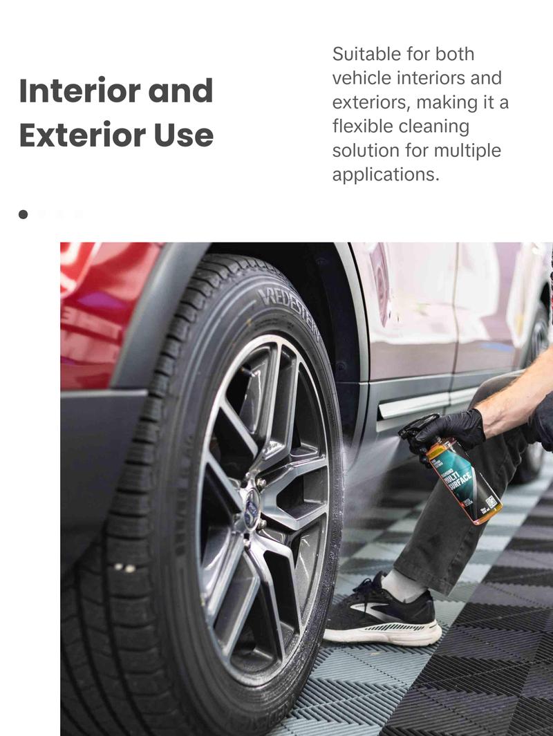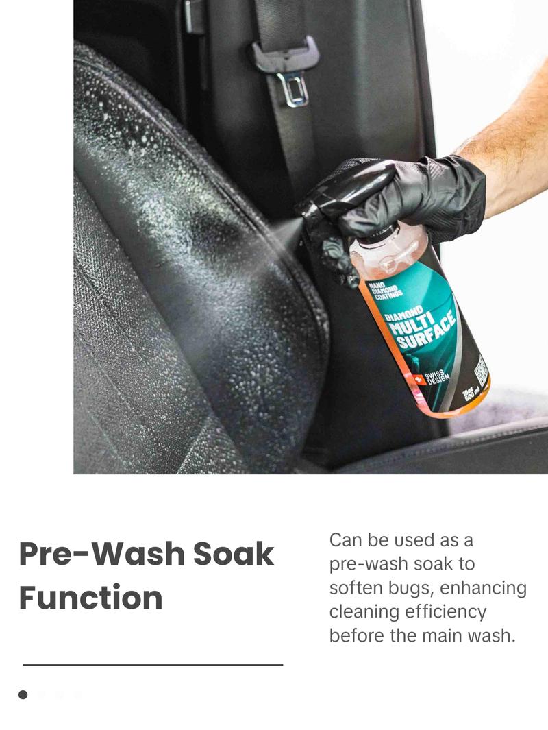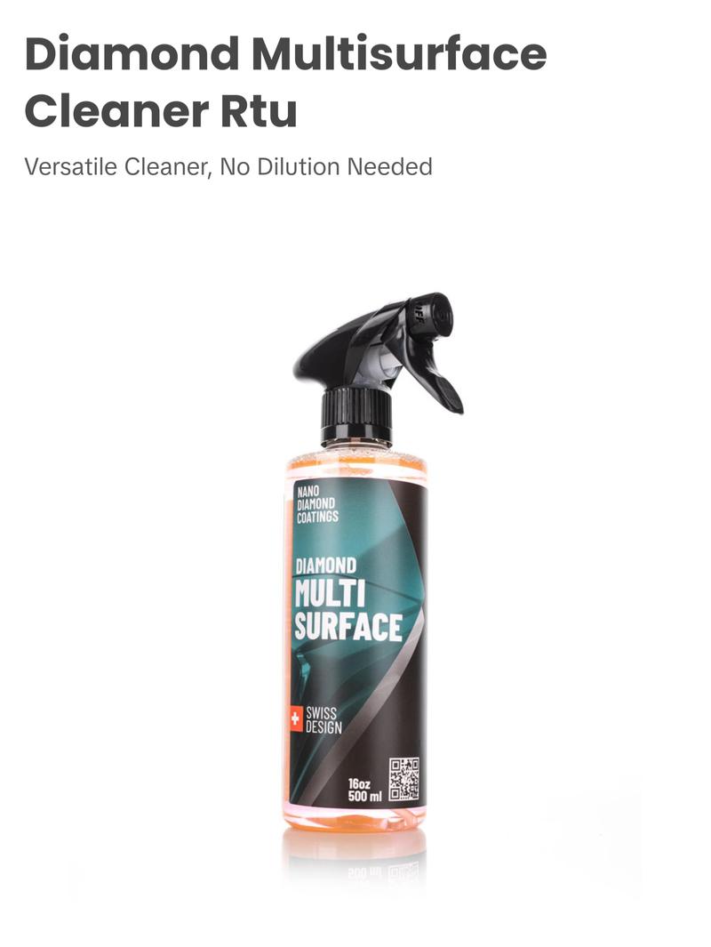 Diamond Multi Surface RTU is a ready-to-use cleaner that requires no dilution. It handles any job, whether interior or exterior. This versatile cleaner offers gentle yet powerful action on virtually any vehicle surface. Use it as a pre-wash spray, bug remover, leather cleaner, or to wipe down plastics. There's nearly no limit to its uses.