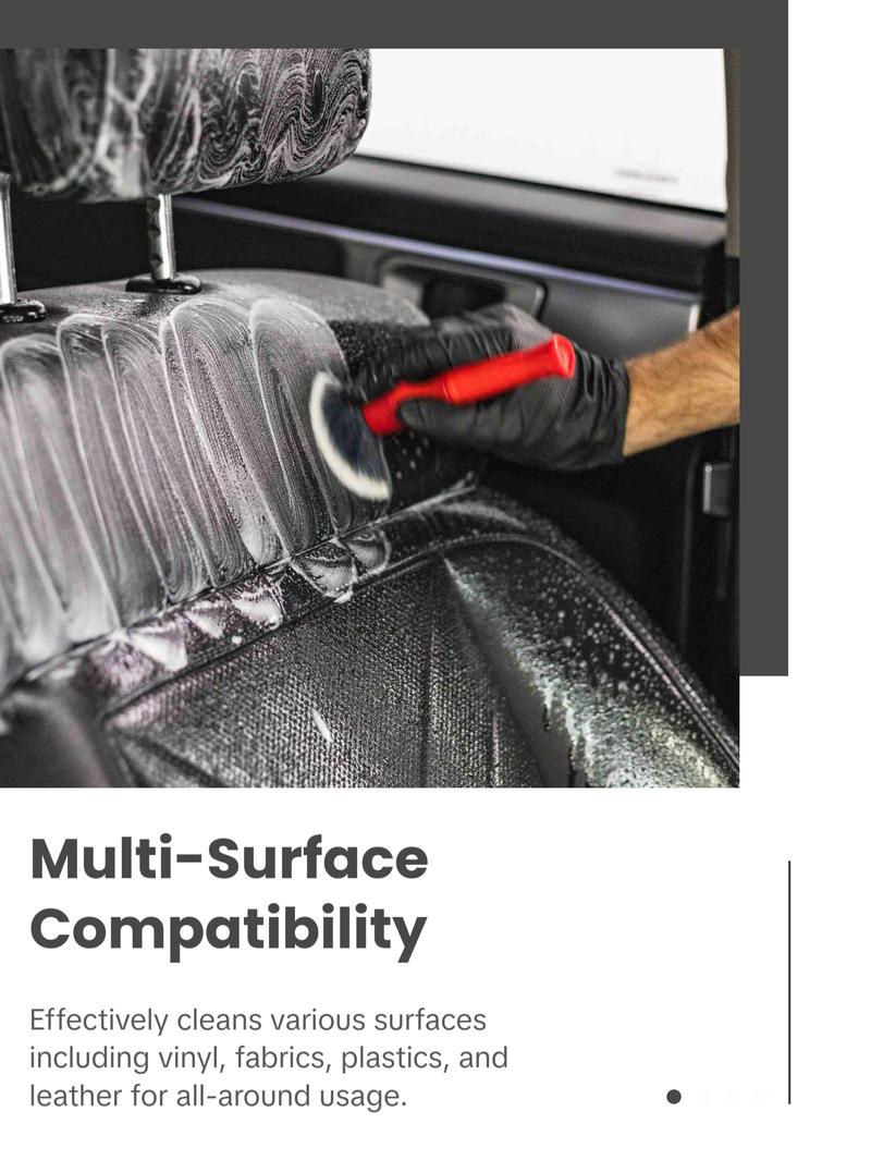 Interior: Spray and agitate with a soft detailing brush or microfiber cloth. Wipe away residue with a clean, damp microfiber cloth. Rinse or replace regularly.
