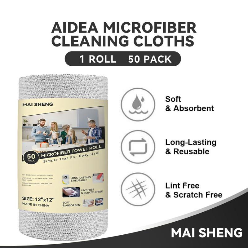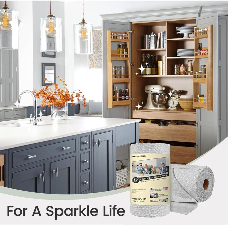 ✨ Easy-Tear Design ✨ Packaged in rolls, these microfiber cleaning cloths can be easily torn off as needed, similar to paper towels. Each roll contains 50 cloths, ensuring you always have enough for all your cleaning needs.