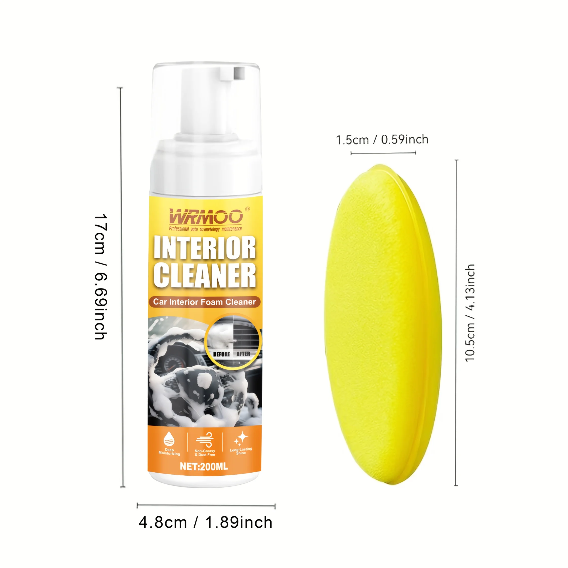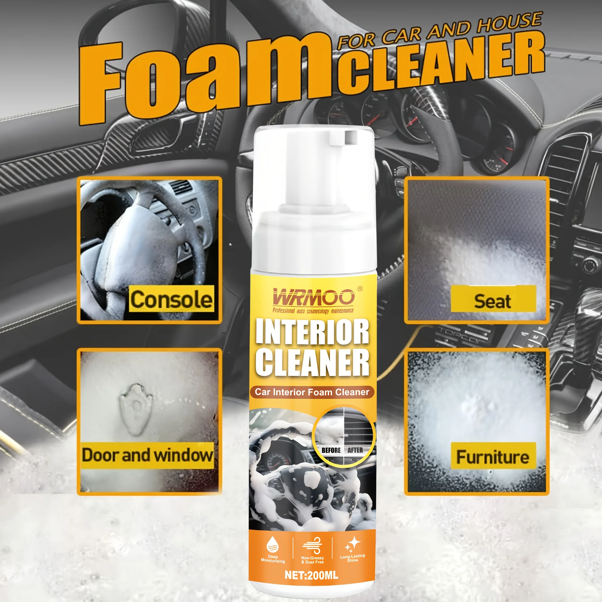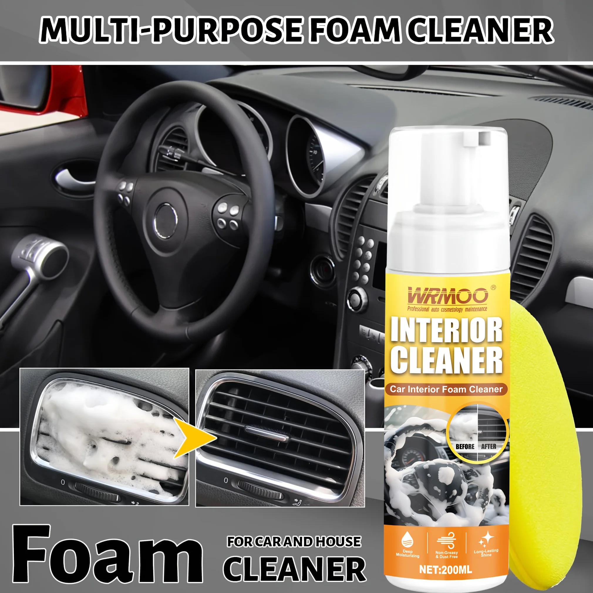 200ml Multi-Purpose Foam Cleaner & Rust Remover Spray - Heavy-Duty Degreaser for Car Interiors, Home Kitchen, Upholstery & Household Surfaces - Quick-Acting Stain & Grime Fighter, Trigger Spray Bottle, Lemon Scented Foam